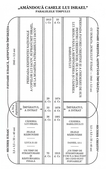 După cum se arată în diagrama alăturată, perioada favorii lor, de la începutul existenței lor naționale la moartea lui Iacov, până la sfârșitul acelei favori la moartea lui Cristos, în 33 d. Cr., a fost de o mie opt sute patruzeci și cinci (1845) de ani; și atunci a început „dublul” lor (mișne) -- repetarea sau duplicarea aceleiași lungimi de timp, o mie opt sute patruzeci și cinci (1845) de ani fără favoare. O mie opt sute patruzeci și cinci de ani de la 33 d. Cr. indică anul 1878, ca fiind sfârșitul perioadei lor de dizgrație. 33 d. Cr. + 1845 = 1878 d. Cr.